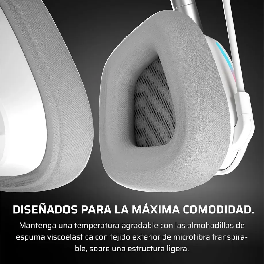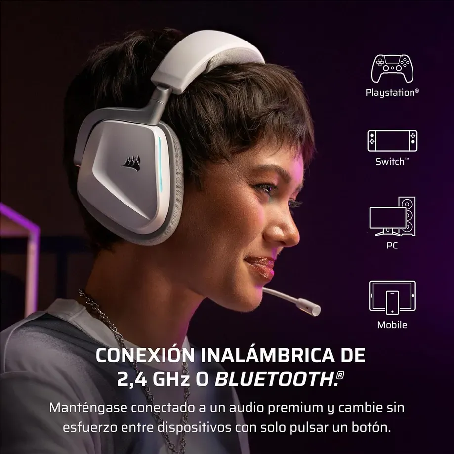 Headset Corsair Void v2 Auriculares Inalámbricos para Juegos con Bluetooth para PC, PS5, PS4, Switch y Móvil – Dolby Atmos, Batería de 70 Horas, Inalámbrica de Doble Banda, Carga Rápida – Blanco
