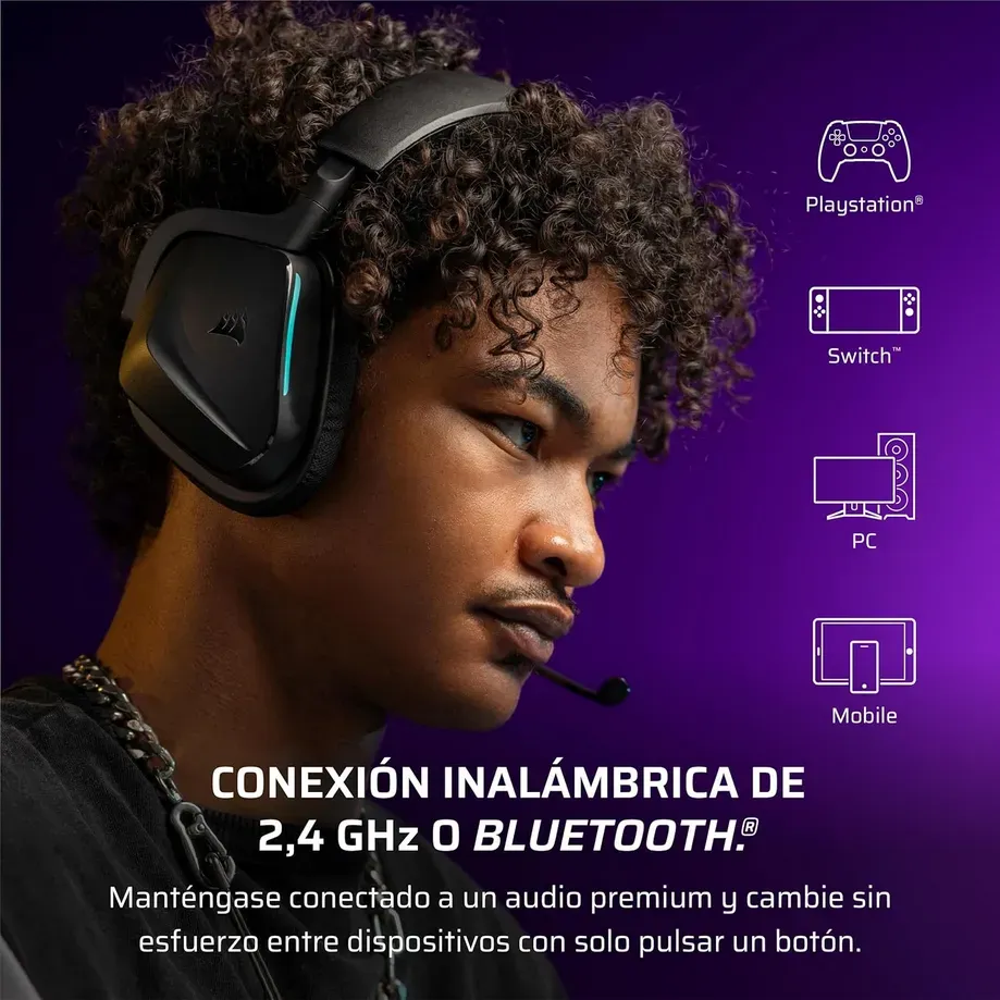 Headset Corsair Void v2 Auriculares Inalámbricos para Juegos con Bluetooth para PC, PS5, PS4, Switch y Móvil – Dolby Atmos, Batería de 70 Horas, Inalámbrica de Doble Banda, Carga Rápida – Negro