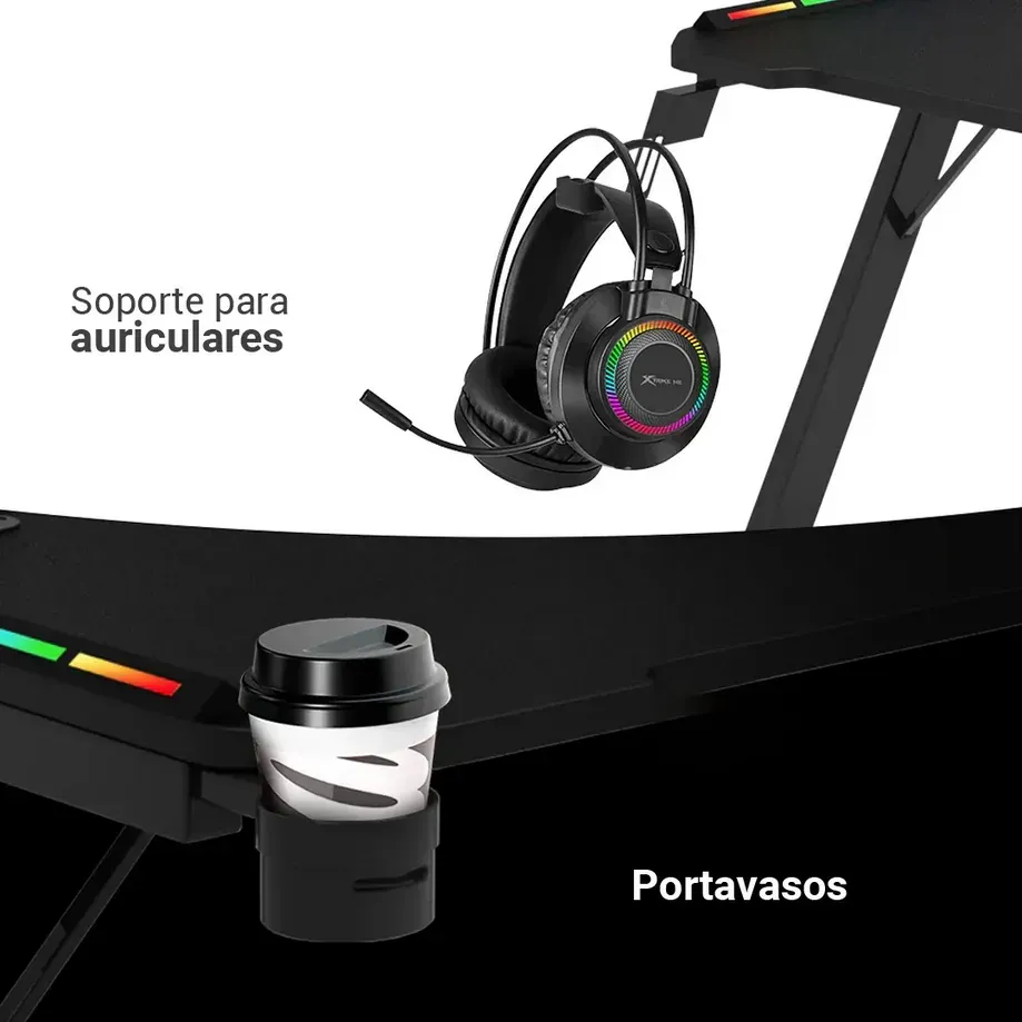 Mesa Gaming MARVO XTRIKE ME DK-05 RGB SOPORTE HEADSET Y VASO