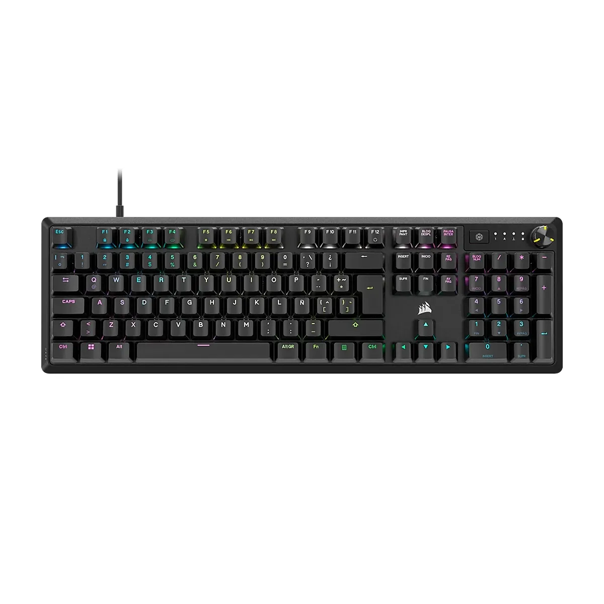 Descubre el Corsair K70 CORE, el teclado mecánico que eleva tu experiencia de juego. Con interruptores mecánicos Corsair Red para pulsaciones rápidas y suaves, y un dial multimedia para un control fácil, este teclado combina funcionalidad y est...