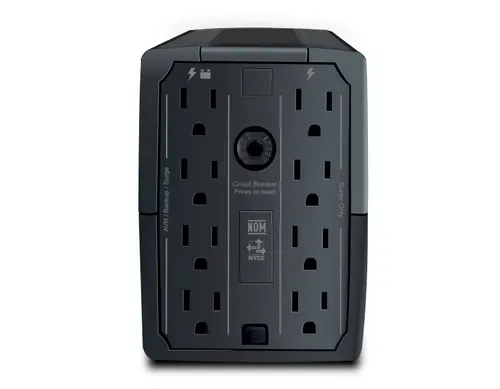UPS interactivo de línea de 1000VA con 8 toma corrientes NEMA 5-15 diseñados para el hogar / oficina. Baterías de plomo Acido selladas internas, regulador de voltaje supresor de sobre tensiones y salidas de derivación par...